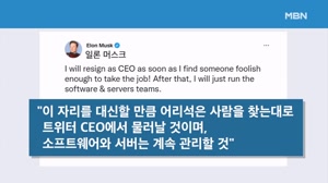 머스크 논란 속에 트위터 CEO 사임 의사 "어리석은 후임 찾겠다" 【 앵커멘트 】 조만장자, 세계 최고 갑부라 불리는 일론 머스크가 SNS 트위터 인수 두 달 만에 최고경영자 자리에... 일론 머스크. 지난 10월 대표적 SNS인 트위터를 56조 원에 전격 인수한 이후 행보는 그야말로 좌충우돌이었습니... 2022.12.22