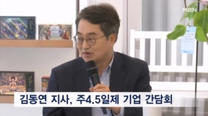 김동연 경기지사, 주4.5일제 참여기업 간담회 김동연 경기도지사가 주4.5일제 시범사업에 참여하는 기업체를 방문해 운영 현황을 점검하고 임직원들과 간담회를 가졌습니다. 김 지사는 어제(22일) 경기도 용인의 한 기업을 찾아 "주4.5일제가 생산성과 '워라밸' 두 마리 토끼를 잡을 수 있다는 확신... 25.10.23 09:16