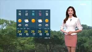 [굿모닝MBN 날씨]서울 한낮 24도 '선선'…오전부터 중부 약한 비 ...가량 높겠습니다. 주말 동안 맑은 하늘 드러나겠고요. 서울의 아침 기온은 갈수록 내림세를 보이면서 일교차가 크게 벌어지겠습니다. 날씨였습니다. (김다영 기상캐스터) #MBN #날씨 #김다영 #굿모닝MBN #중부비 #선선 #기상캐스터 2022.08.25