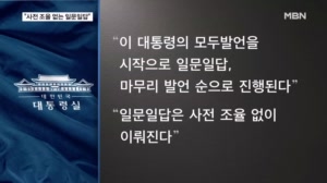 내일 이 대통령 첫 기자회견 "일문일답 사전 조율 없이" ... 먼저 선한빛 기자가 보도합니다. 【 기자 】 이재명 대통령은 지난달 25일 취임 3주 만에 광주로 내려가 주민 간담회를 열었습니다. 현장에서 참석을 원하는 시민들이 있자 이 대통령은 즉석에서 모두 참석을 허용했습니다. 형식은 자유롭게 의견을 나누는 타운홀미팅이었습니다. ▶ 인터뷰 : 이재명 / 대통... 2025.07.02