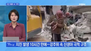 2월 8일 굿모닝MBN 주요뉴스 ...서"…"골든타임 촉박" 튀르키예 남부와 시리아를 강타한 지진으로 현재까지 7,000명 넘게 숨진 것으로 전해지고 있...의 경우 사망자가 2만 명이 넘을 것으로 전망했습니다. 피해 지역이 광범위한 데다 악천후와 계속된 여진으로 수색·구... 2023.02.08