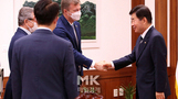 [포토] 우크라이나 방한단 접견하는 김진표 국회의장 ...드리 니콜라엔코 우크라이나 의원 등 한-우크라이나 의원친선협회 방한단과 접견, 세르히 타루타 의원으로부터 루슬란 스테판추크 우크라이나 국회의장의 친필 서한을 전달받고 있다. [한주형 기자] [ⓒ 매일경제 & mk.co.kr, 무단전재 및 재배포 금지] 22.07.13 13:30