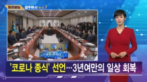 미리 보는 김주하의 뉴스7 ▶ '코로나 종식' 선언…3년여만의 일상 회복 윤석열 대통령이 코로나19 감염병 위기경보를 심각에서 경계로 하향 조정한다고 ...2020년 1월 20일 첫 확진자 발생 후 도입됐던 대부분의 방역 규제가 사라지게 됐습니다. ▶ 이재명 '대장동 재판' 오늘부... 23.05.11 11:48
