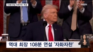 자화자찬 108분 트럼프 국정연설…"관세 강해질 것" 【 앵커멘트 】 트럼프 대통령이 집권 2기 첫 국정연설을 했습니다. 특유의 쇼맨십을 활용해 역대 최장인 108분 동...니다. ▶ 스탠딩 : 강영구 / 특파원 (워싱턴) - "트럼프 대통령은 강경 노선을 재확인했습니다. 지지율 하락 속... 2026.02.26
