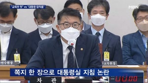 여 "교육부 탓" 야 "대통령 합작품"…'대통령실 지침' 쪽지 논란도 【 앵커멘트 】 초등학교 입학연령을 낮추는 학제개편안 추진에 대한 책임을 놓고 국회에서 여야가 격돌했습니다. 여당은 '교육부...진하기 어려워졌다는 판단을 하고 있습니다." 하지만, 섣부른 학제개편 추진을 둘러싼 책임공방은 이어졌습니다. 민주당은 윤석열 ... 22.08.09 19:01