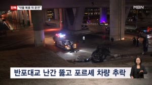 서울 반포대교서 포르쉐 추락…경북 영주 추락 전투기 조종사 구조 【 앵커멘트 】 어젯밤 서울 반포대교를 달리던 포르쉐 한 대가 다리 아래로 떨어지는 사고가 났습니다. 차 안에서 대...사고 소식, 현지호 기자가 전합니다. 【 기자 】 서울 한강 다리 아래에 고가의 외제차 한 대가 뒤집혀 있습니다. ... 2026.02.26