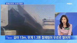 MBN 뉴스파이터-달리는 화물차서 쏟아진 '철제빔'…"아직 트라우마" [시청자 제보] 화물차가 싣고 있던 철제 H빔 우르르 떨어져 [시청자 제보] 길이 13m, 무게 1.3톤 철제빔이 우르르 떨...호사 안진용 문화일보 기자 최명기 정신과전문의 #MBN #화물차철제빔 #도로위날벼락 #시청자제보 #뉴스파이터 #김명준앵커 *해... 22.07.14 18:17