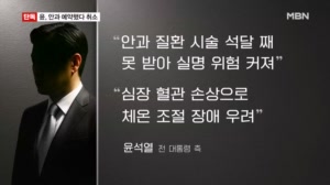 윤 "실명 위기" vs 법무부 "사실과 달라" 팽팽 여론전 ...지 못해 실명 위험이 커지고 있다고도 주장했습니다. ▶ 인터뷰 : 송진호 / 윤석열 전 대통령 변호인 (지난 7일) - "황반변성이라는게 치료를 제때 받지 않으면 실명 위기에 이르는 병입니다. 더군다나 당뇨가 겹쳐 있기 때문에 상태는 심각한 상태입니다... 25.08.16 19:30