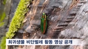 보석처럼 반짝거리는 비단벌레…희귀 야생동물 영상 공개 ...대에 설치된 무인카메라에 비단벌레가 촬영됐다고 밝혔습니다. 비단벌레는 경상남도와 전라권 일부에서 가끔씩 발견되는 희귀 곤충이면서, 멸종위기 야생생물 1급입니다. 이번 무인카메라 영상에는 마찬가지로 멸종위기 야생생물 1급인 붉은박쥐가 겨울잠에 빠진 모습도 담겼습... 2024.09.19