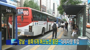 강남·송파 6개 버스노선 오늘부터 운행 중단…대체차량 투입 서울시는 오늘(23일) 운행 중지가 예상되는 송파상운 버스 3214번과 3314번 등 6개 노선에 긴급 차량 58대를 투입한다고 밝혔습니다. 이들 노선은 송파구 마천동을 출발해 천호역, 강변역, 잠실롯데월드, 종합운동장 등 일대를 ... 2017.08.23