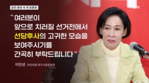 [단독] 조광한 만난 이진숙 "이정현 만나겠다"…'8인 경선' 요구 ...원은 이를 전달하겠다고 답한 것으로 전해졌습니다. 이런 가운데 국민의힘은 오늘 오후 6시 유영하·윤재옥·이재만·추경호·최은석·홍석준 등 6명의 경선 후보가 참여하는 1차 비전 토론회를 진행합니다. [ 노하린 기자 noh.halin@mbn.co.kr ] 26.03.30 15:28