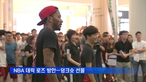 NBA 데릭 로즈 방한…덩크슛 선물 ... 많은 팬으로부터 박수를 받았습니다. 로즈는 이어 국내 초등학교 선수들과는 4대 4 대결을 했고, 가수 제시와 NS윤지, 하하 등 연예인들과도 호흡을 맞추는 등 다양한 팬 서비스로 이목을 끌었습니다. [ 국영호 기자 / iam90... 2016.08.16
